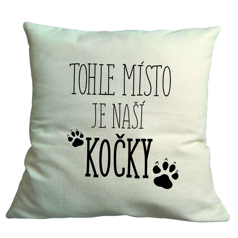 - Látkový povlak na polštář - Tohle místo je naší kočky