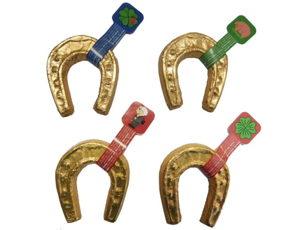 Hledáte malý, ale výjimečný dárek, který udělá radost a zároveň přinese štěstí? Čokoládová podkova je přesně to, co potřebujete. Tato sladká podkova je vyrobená z kvalitní čokolády, vytvarovaná do symbolu štěstí a pečlivě zabalená do zlaté hliníkové fólie, která jí dodává elegantní a luxusní vzhled.