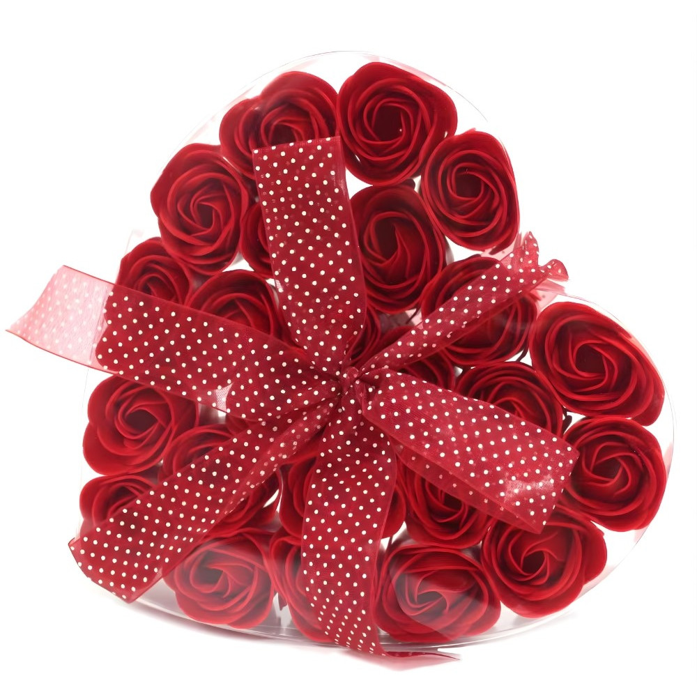 Mýdlové květy růže dárkové balení srdce 24ks - červená