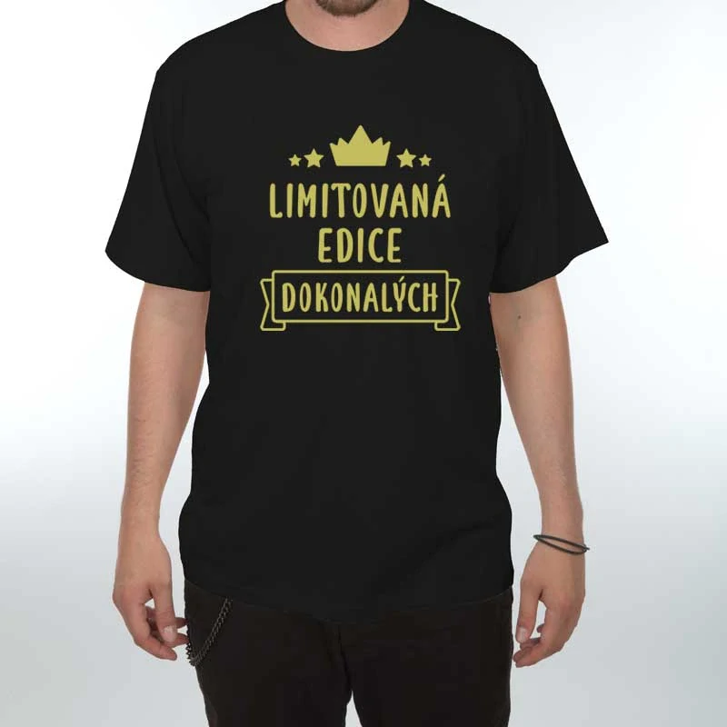 Vtipný potisk s motivem Limitovaná edice dokonalých dodává tričku osobitý charakter. Hodí se na volný čas, do práce, na oslavy i jako originální dárek k narozeninám, svátku nebo Vánocům pro muře, kteří jsou sebejistí.